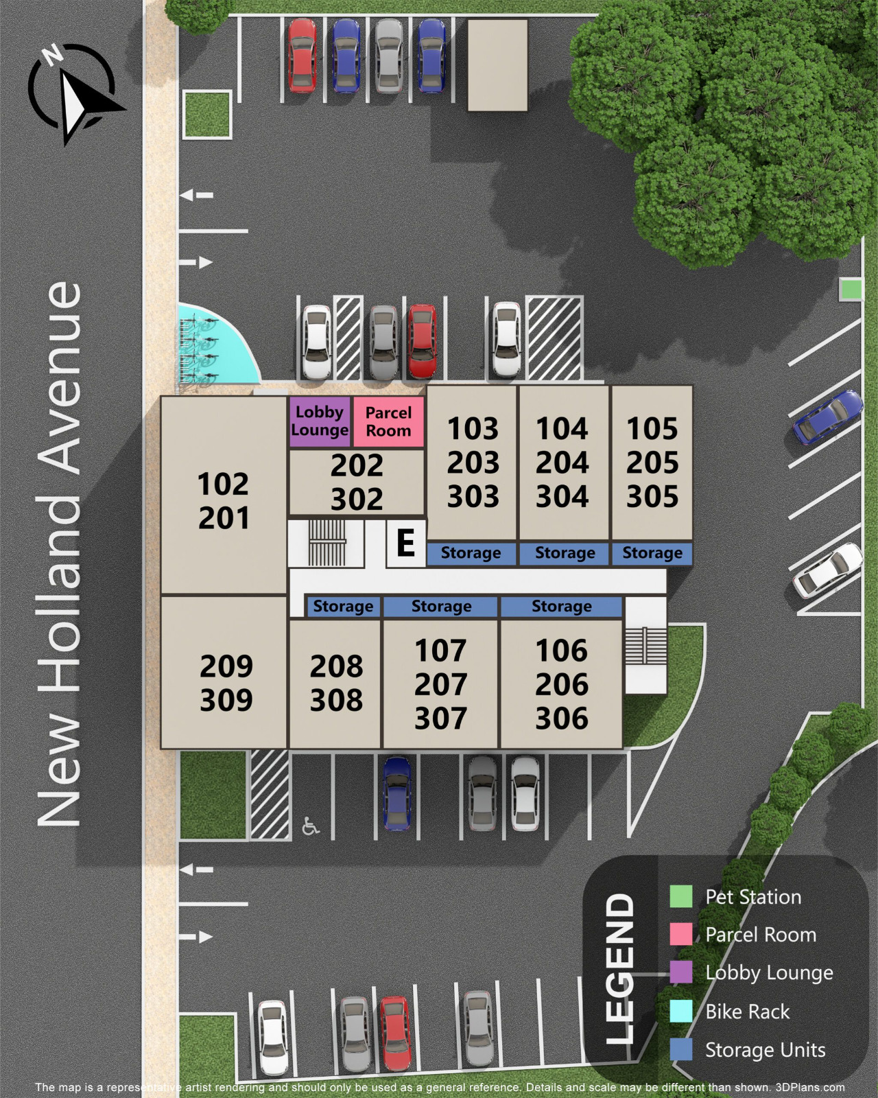 Apt 102/102 3D, Dylan 103/3D, Marley 104/3D, Cooper 105/3D, Manilow 106/3D, Springsteen 107/3D